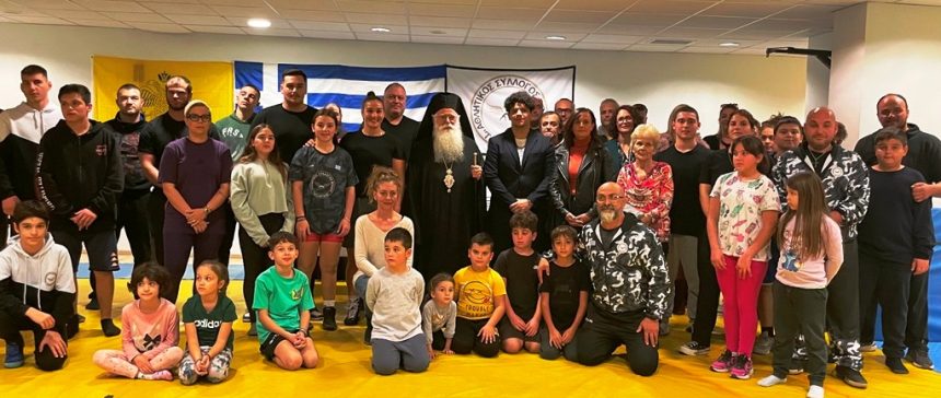 Ο Σεβασμιώτατος στην σύντομη ομιλία του αναφέρθηκε στην αφορμή που τον έφερε κοντά στον Σύλλογο για να τελέσει τον αγιασμό, επισημαίνοντας τη σχέση του νέου Διακόνου π. Πορφυρίου με τον σύλλογο επισημαίνοντας ότι: «Χαίρομαι πάρα πολύ για τη δυνατότητα που μου δόθηκε να τελέσω τον Αγιασμό για αυτή τη χρονιά που ξεκίνησε ήδη και για αυτή την προσπάθεια που έχετε αρκετά χρόνια. Αφορμή είναι ο νέος μου διάκονος ο πατήρ Πορφύριος, που έχει περάσει από εδώ, έχει γυμναστεί, έχει κάνει αγώνες σώματος και πνεύματος, αλλά επέλεξε τελικά να μπει στο αγώνισμα της ψυχής. Και χαίρομαι γιατί θα έχετε έναν δικό σας άνθρωπο που θα προσεύχεται για σας. Εύχομαι σε όλους υγεία και δύναμη· η άθληση του σώματος είναι ταυτόχρονα και άθληση της ψυχής, και τα παιδιά περιμένουν από εσάς όχι μόνο τεχνική, αλλά και ήθος, πνεύμα και πρότυπα ζωής. Και ως μικρή ευλογία μιας άλλης πάλης σας προσφέρω αυτή την εικόνα του Αγίου Ιγνατίου, που φέρω το όνομά του· είναι ο Άγιος που πάλεψε με τα λιοντάρια — εκείνα του αφαίρεσαν τη φυσική ζωή, όμως η ψυχή του και η καρδιά του έγραφαν “ Ιησούς Χριστός ”. Το ‘Ιγνάτιος’ σημαίνει ‘φλόγα’, και σε όσους δίνω αυτή την εικόνα θυμίζω ότι στη ζωή υπάρχουν πάντα λιοντάρια. Να είμαστε προσεκτικοί.»