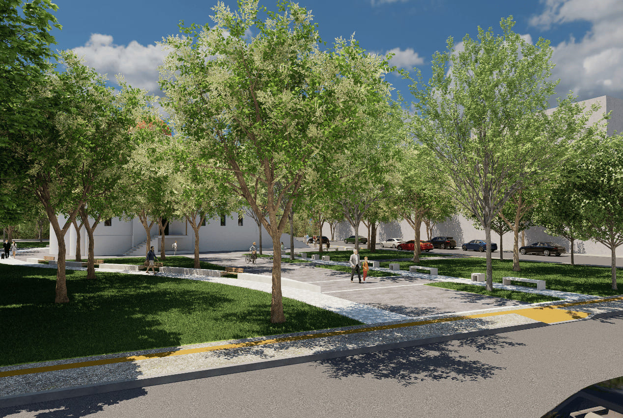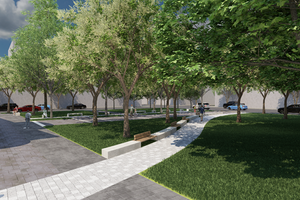 • Ανάδειξη του Ο.Τ. ως ένα σύγχρονο χώρο αστικού πρασίνου με στοιχεία  βιοκλιματικού σχεδιασμού: ενίσχυση της φύτευσης με μεγάλα δέντρα, κατασκευή τεχνητού στοιχείου νερού, ένταξη διαδρομών κυκλοφορίας/ στάσης μέσα στο πράσινο ώστε να διασφαλιστούν οι συνθήκες θερμικής άνεσης.