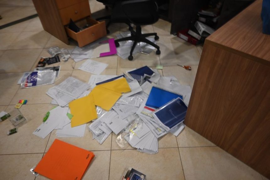 Το απόγευμα του Σαββάτου, ανήλικος εισήλθε στο κτίριο ενεργοποιώντας συναγερμό που ενημερώνει τον Διευθυντή στο κινητό του. Ο δράστης εισήλθε σε διάφορα γραφεία, άνοιξε συρτάρια πετώντας έγγραφα ακόμη και χρήματα στο δάπεδο ενώ από ένα ψυγείο πήρε και έφαγε γλυκά και ήπιες αναψυκτικά.