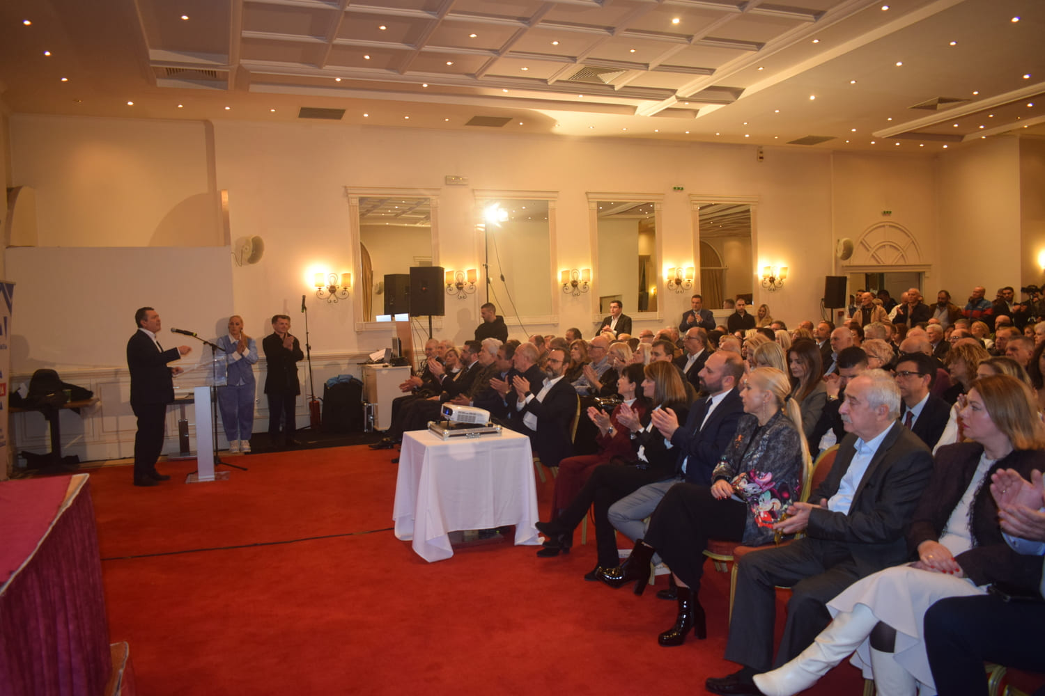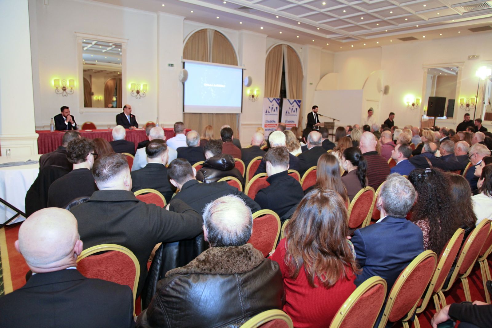 Στην πρώτη τους εμφάνιση σε κομματική εκδήλωση στην χώρα οι δύο σύνεδροι, δικαίωσαν την πρωτοβουλία του Προέδρου της ΔΕΕΠ κ. Νικ. Αθανασάκη να τους προσκαλέσει στον Βόλο και να μιλήσουν στο κοινό της ΝΔ, το οποίο γέμισε ασφυκτικά τους χώρους του ξενοδοχείου.