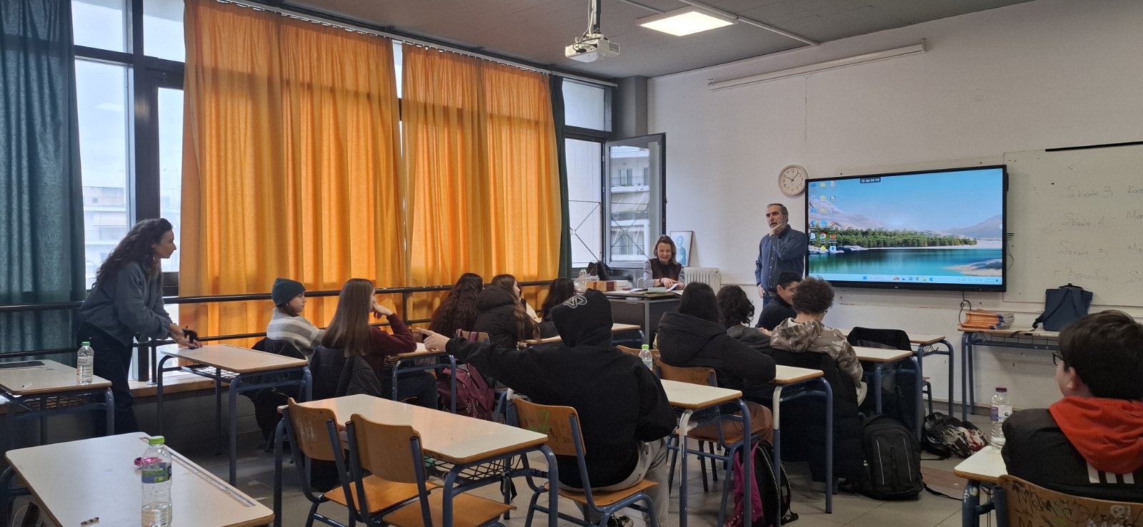 Στη διαδικτυακή δράση συμμετείχε και ο Πρόεδρος της Ένωσης Συντακτών Θεσσαλίας, Στερεάς Ελλάδας και Εύβοιας, δημοσιογράφος Δημήτρης Χορταργιάς, ο οποίος συνδέθηκε ζωντανά από τη σχολική τάξη του 7ου Γυμνασίου Βόλου, μαζί με τους μαθητές και τις εκπαιδευτικούς που υλοποιούν το πρόγραμμα, κ.κ. Αργυρώ Μέκα, Θωμαΐς Ντέμκα και Ελένη Διαμαντή. Το παρόν στην αίθουσα έδωσε και ο διευθυντής του σχολείου, Περικλής Φασουράκης.