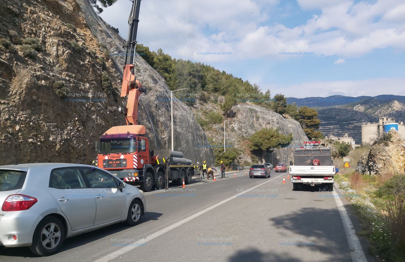 Ενισχύεται η ασφάλεια χρήσης του οδικού δικτύου Βόλος – Αγριά (νότιος κλάδος) με την τοποθέτηση στις πλαγιές της Γορίτσας διχτυωτού βράχου.