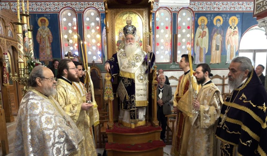 Στον Ιερό Ναό Αγίου Γεωργίου Νέας Αγχιάλου λειτούργησε σήμερα, Κυριακή 22/3, Δ΄ Κυριακή των Νηστειών της Αγίας και Μεγάλης Τεσσαρακοστής, ο Σεβ. Μητροπολίτης Δημητριάδος κ. Ιγνάτιος.