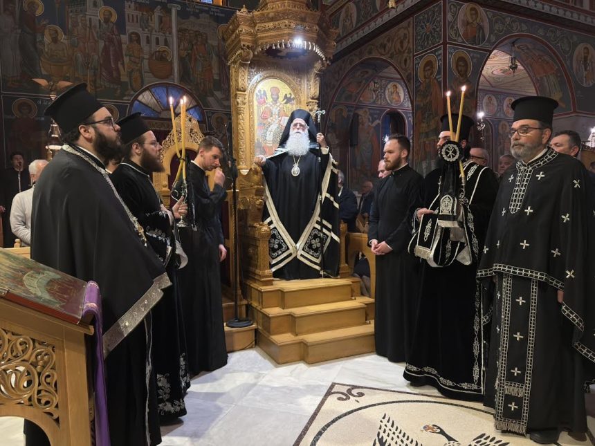 Νωρίτερα, ο Σεβασμιώτατος τέλεσε την Ακολουθία του Ιερού Ευχελαίου στον Ιερό Ναό Μεταμορφώσεως του Σωτήρος Βόλου, ενώ μετά την Ακολουθία του Νιπτήρος μετέβη στον Ιερό Ναό Αγίων Κωνσταντίνου και Ελένης Βόλου, όπου τέλεσε Ιερά Αγρυπνία.