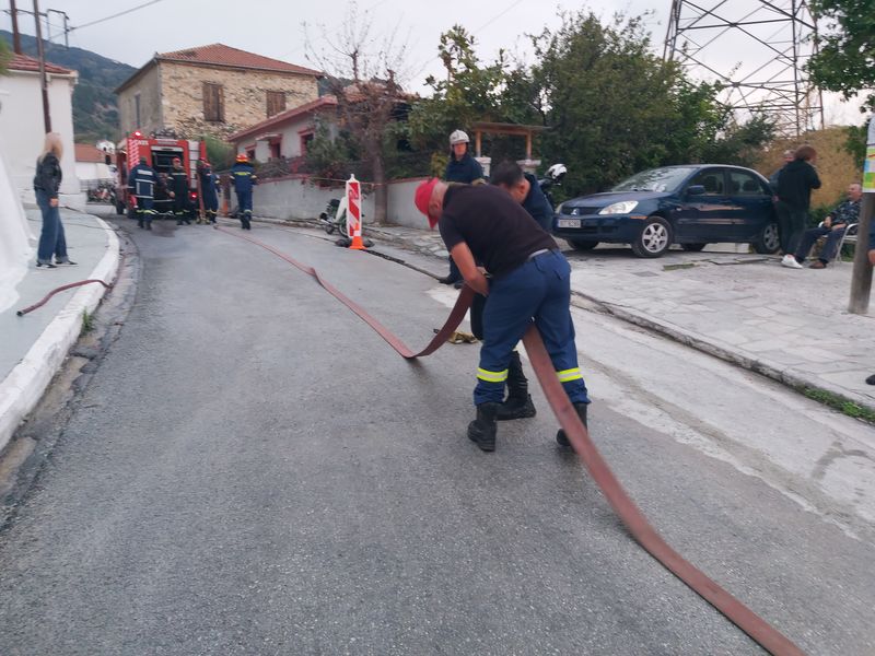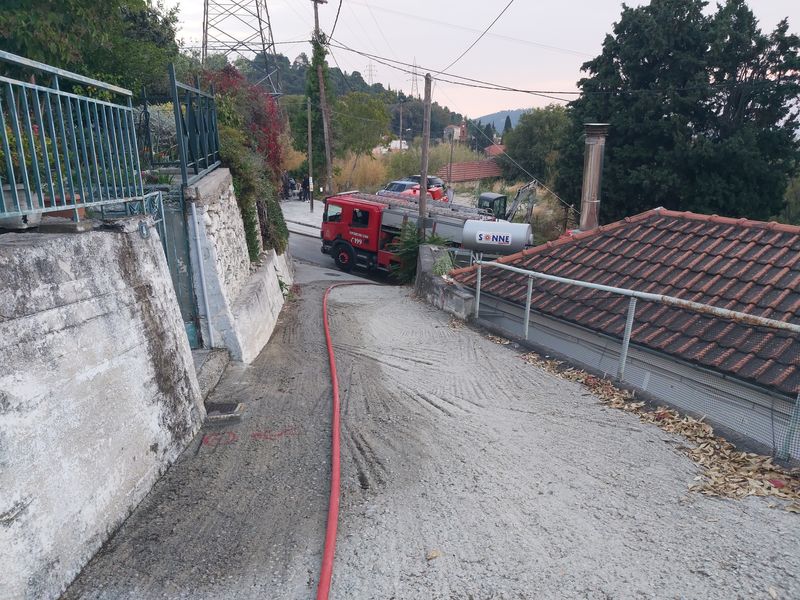 Οι Πυροσβεστικές δυνάμεις δεν ήταν δυνατόν να φτάσουν με τα οχήματά τους στην φλεγόμενη κατοικία και ανέπτυξαν μάνικες, ενώνοντάς τες ώστε να την προσεγγίσουν από δύο στενά ανηφορικά δρομάκια και να επιχειρήσουν την κατάσβεση.