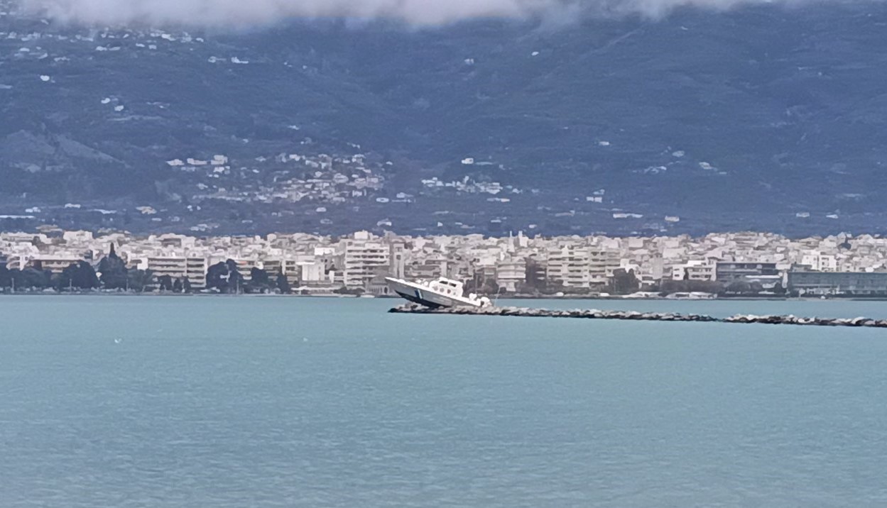 Πάνω στον εξωτερικό λιμενοβραχίονα του λιμένα Βόλου προσάραξε σήμερα το πρωί σκάφος του Λιμεναρχείου Βόλου, επιστρέφοντας στη βάση του μετά από περιπολία.