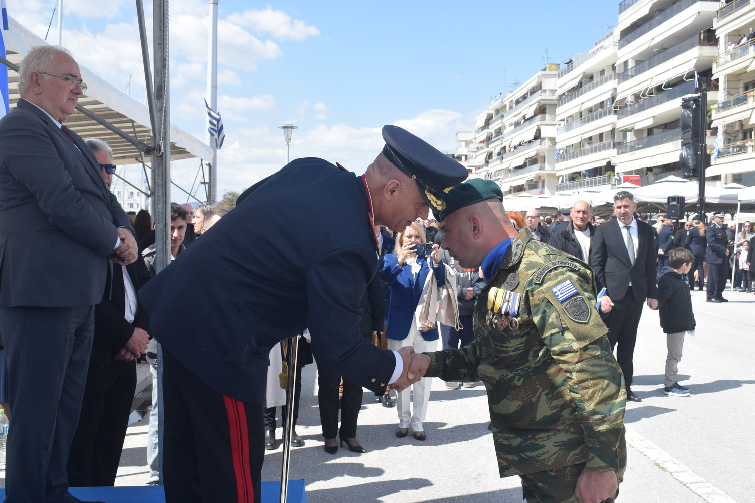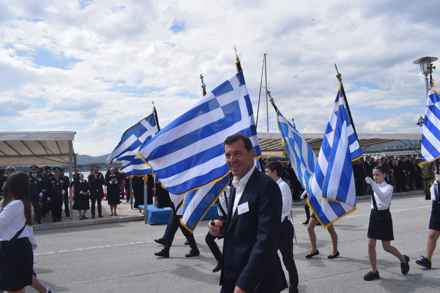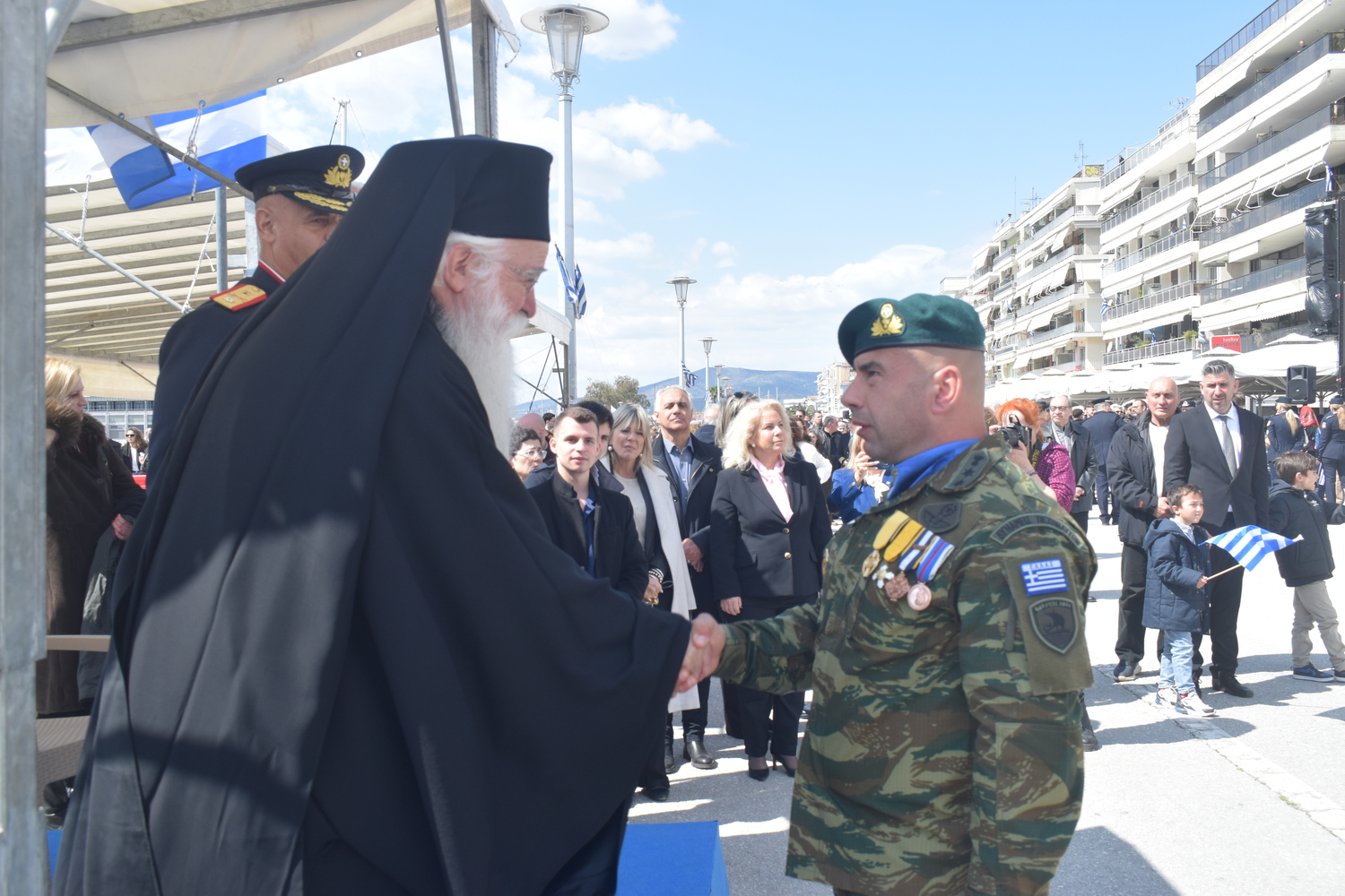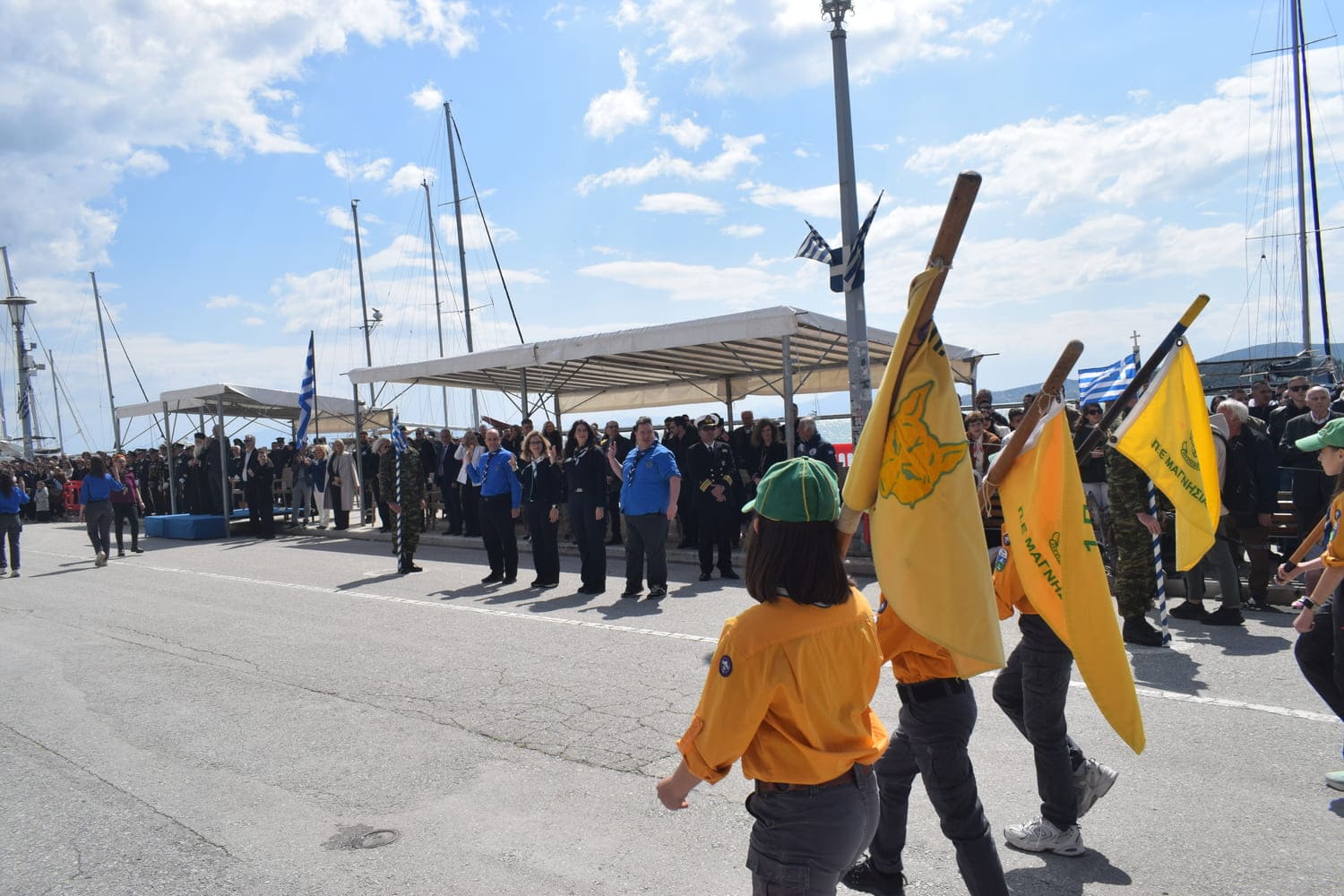 Στην παρέλαση στην παραλία του Βόλου την Κυβέρνηση εκπροσώπησε ο Γενικός Γραμματέας Αυτοδιοίκησης και Αποκέντρωσης, κ. Σάββας Χιονίδης. Συμμετείχαν ο Μητροπολίτης Δημητριάδος κ. Ιγνάτιος, ο Ανώτερος Διοικητής Φρουράς Βόλου, Ταξίαρχος Νικ. Κούτελης, εκπρόσωποι της πολιτικής ηγεσίας, φορέων, των Ενόπλων Δυνάμεων και των Σωμάτων Ασφαλείας.