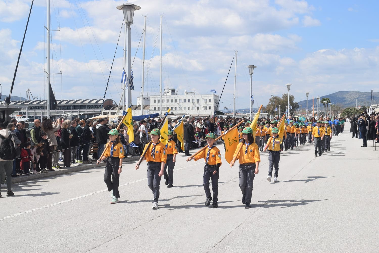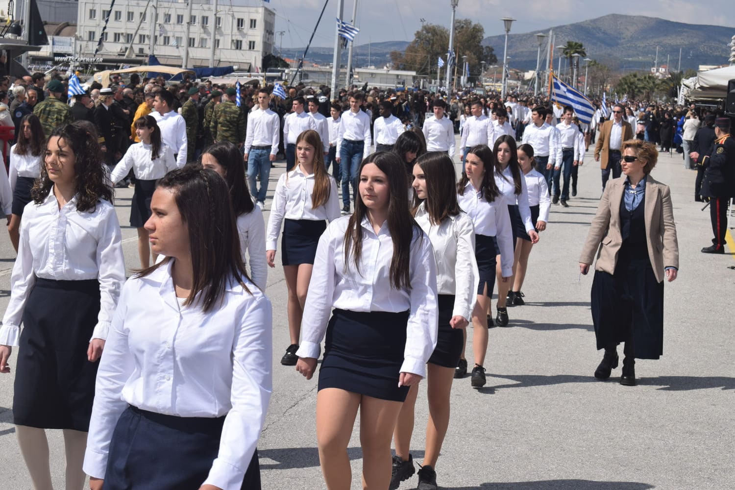 Η παρέλαση ξεκίνησε με ηλιοφάνεια και ζέστη με τη συμμετοχή μαθητών και μαθητριών της πρωτοβάθμιας και δευτεροβάθμιας εκπαίδευσης, οι οποίοι παρέλασαν με υπερηφάνεια, μεταφέροντας μηνύματα ελπίδας και συνέχειας της ιστορικής μνήμης.