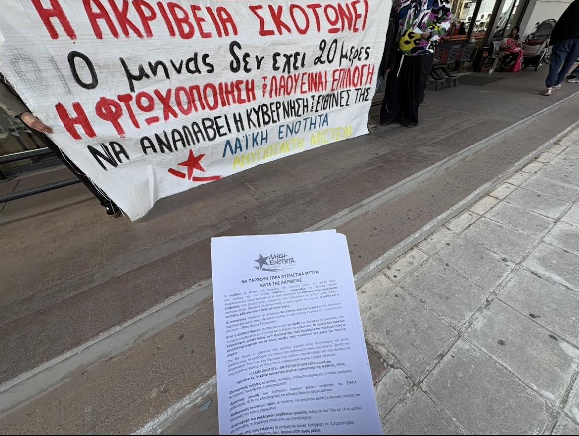 Η ακρίβεια λεηλατεί καθημερινώς τα λαϊκά εισοδήματα και οδηγεί χιλιάδες πολίτες σε πλήρη ένδεια. Τις εορταστικές ημέρες το πρόβλημα αναδεικνύεται ακόμα περισσότερο, αφού ο οικογενειακός προϋπολογισμός δεν αντέχει στην εξασφάλιση βασικών προϊόντων.