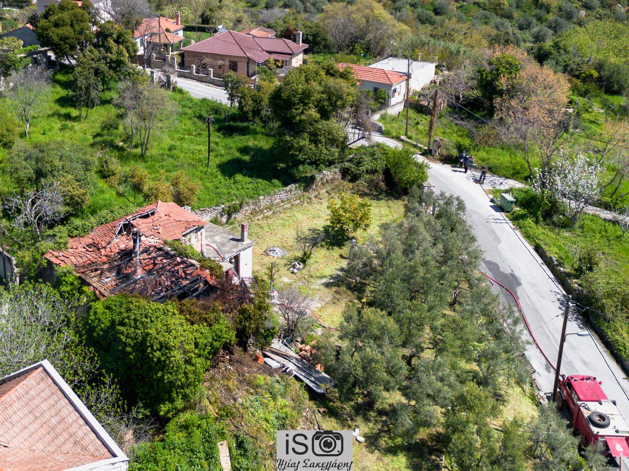 Φωτιά σε ερειπωμένο σπίτι στα Άνω Λεχώνια κατέστρεψε την στέγη (εικόνες)