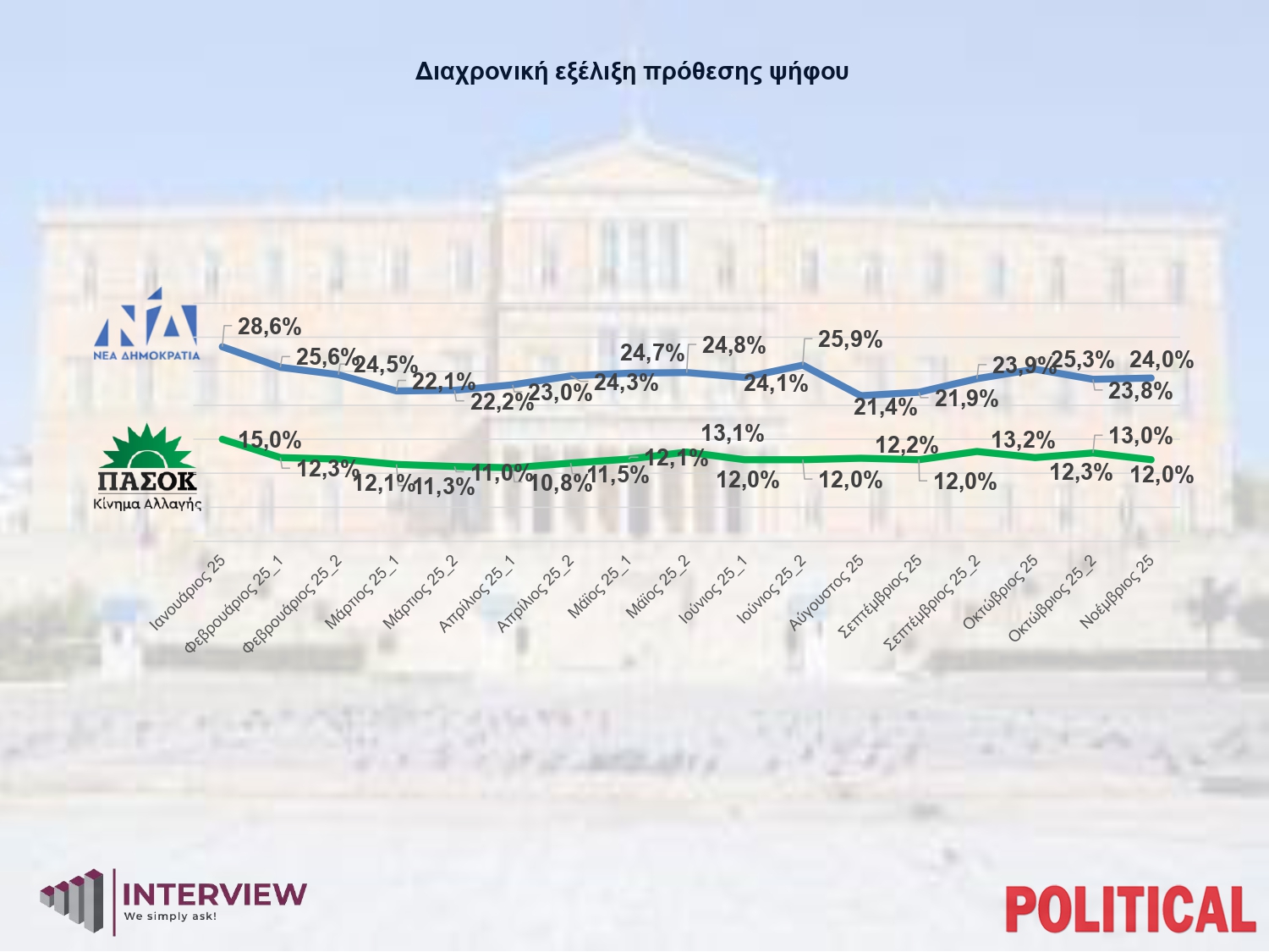 Διπλάσια η διαφορά ΝΔ από ΠΑΣΟΚ