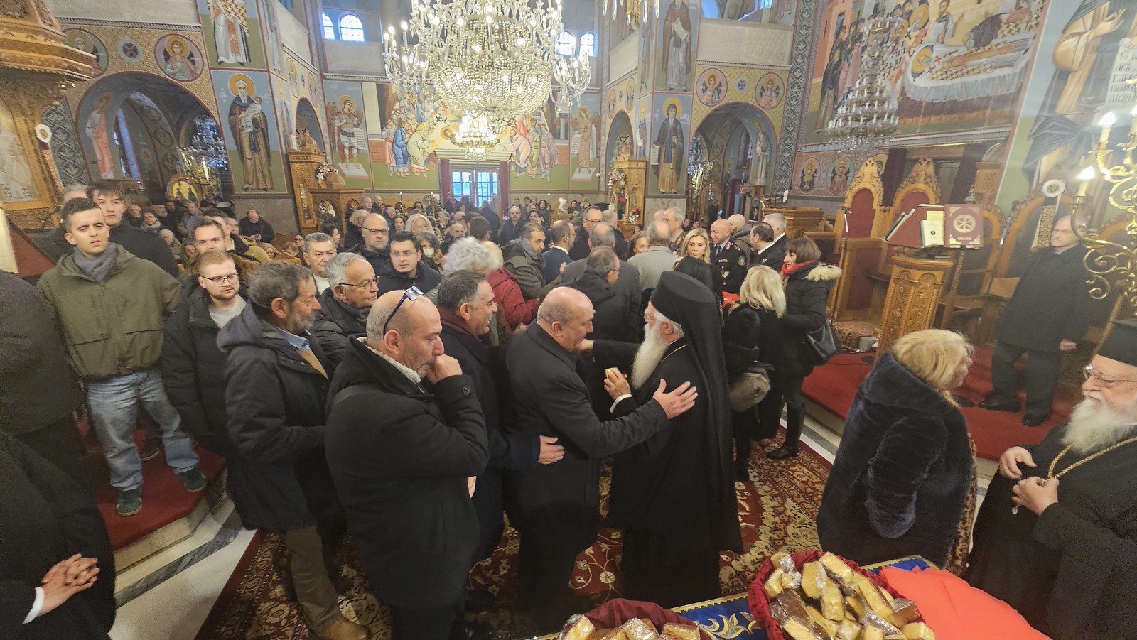 Την Πρωτοχρονιάτικη Βασιλόπιτα της τοπικής Εκκλησίας ευλόγησε σήμερα στον Μητροπολιτικό Ιερό Ναό Αγίου Νικολάου Βόλου ο Σεβ. Μητροπολίτης Δημητριάδoς κ. Ιγνάτιος. Παρέστησαν οι Βουλευτές Μαγνησίας κ.κ. Ζέττα Μακρή και Χρήστος Μπουκώρος, η Αντιπεριφερειάρχης Μαγνησίας & Βορείων Σποράδων κ. Άννα – Μαρία Παπαδημητρίου, οι επικεφαλής των Στρατιωτικών, Λιμενικών, Αστυνομικών και Πυροσβεστικών Αρχών, εκπρόσωποι της Τοπικής Αυτοδιοίκησης και πλήθος κόσμου, που συνέρρευσε στον Ναό του Πολιούχου μας, παρά το τσουχτερό κρύο.