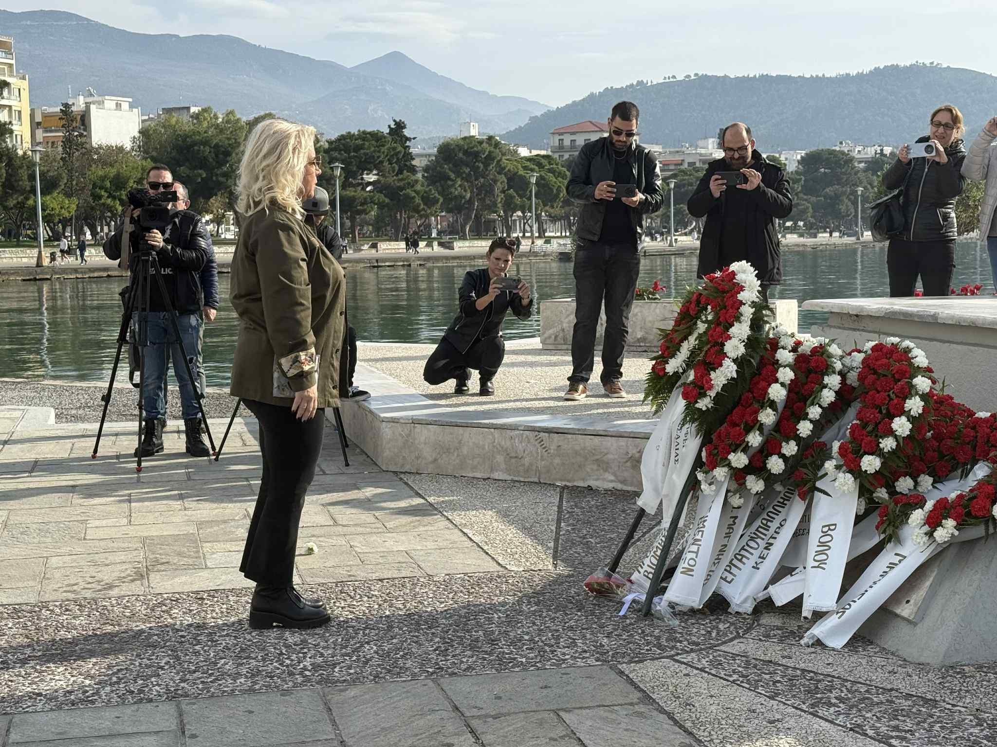 Κατάθεση στεφανιών για την επέτειο του Πολυτεχνείου σήμερα στο Ηρώο στην παραλία του Βόλου. Θεσμικοί και εκπρόσωποι κομμάτων έστειλαν μηνύματα για την 52η επέτειο.