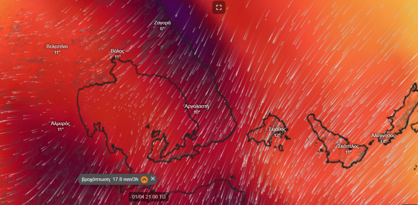 Περαιτέρω επιδείνωση του καιρού αναμένεται την Τετάρτη 01 Απριλίου 2026 με βροχές, καταιγίδες και θυελλώδεις ανέμους στην επικράτεια της χώρας, σύμφωνα με τα τελευταία προγνωστικά δεδομένα του Εθνικού Αστεροσκοπείου Αθηνών / meteo.gr.