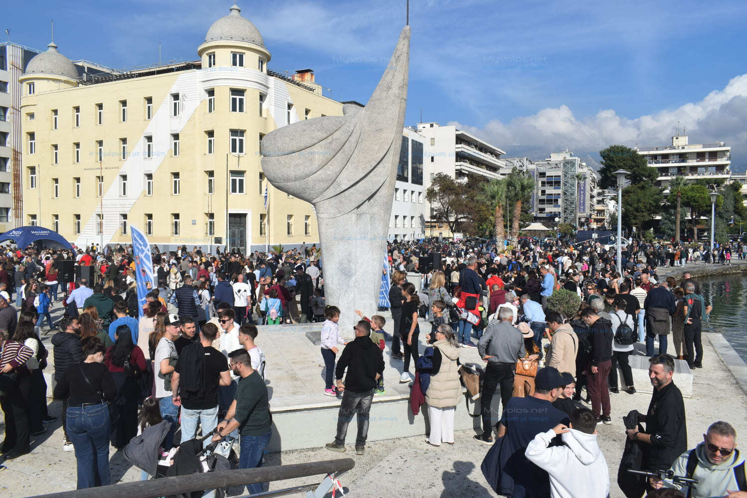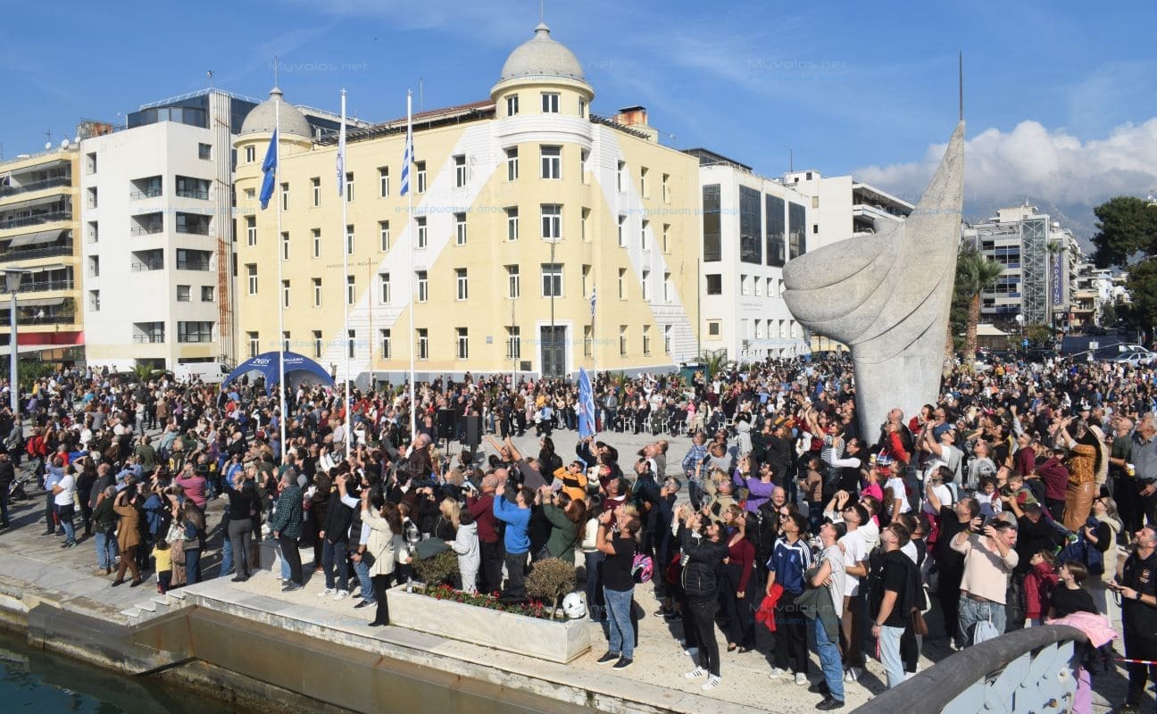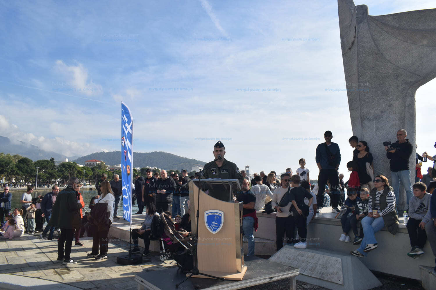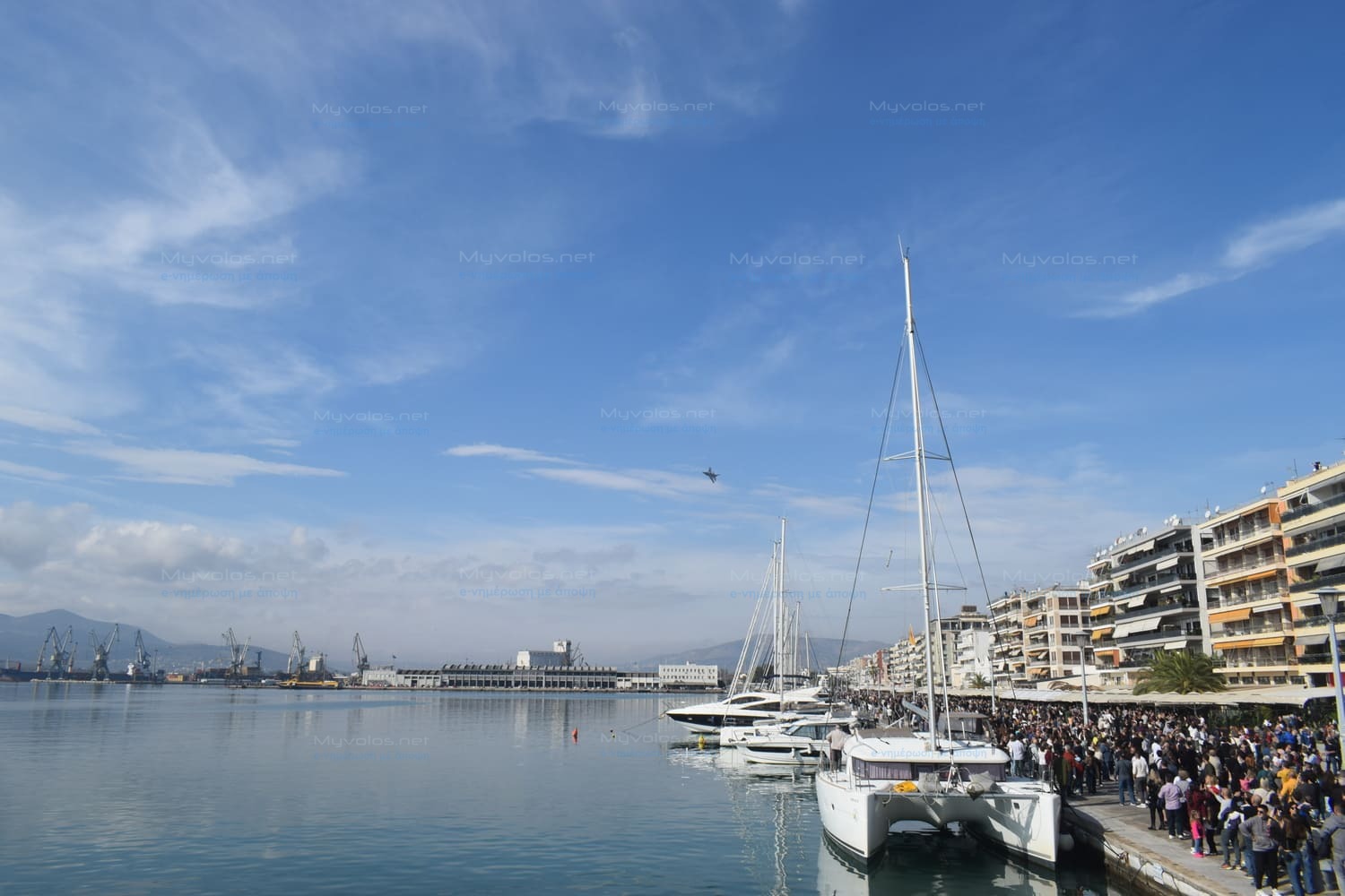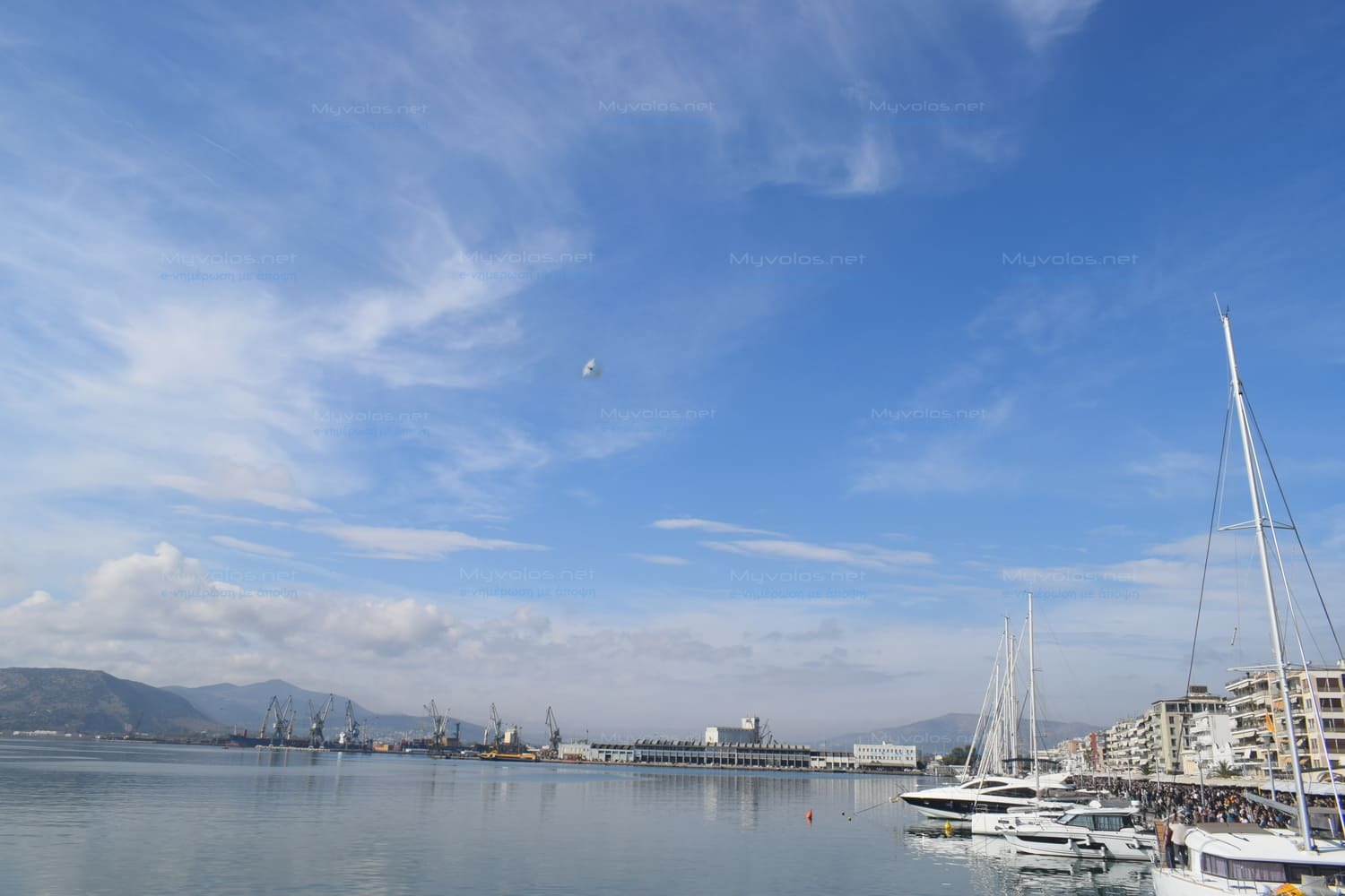 Χιλιάδες βλέμματα στην ηλιόλουστη παραλία του Βόλου επικεντρώθηκαν σήμερα στον ουρανό της πόλης θαυμάζοντας τους εντυπωσιακούς ελιγμούς του μαχητικού αεροσκάφους της F-16 Demo Team ΖΕΥΣ.