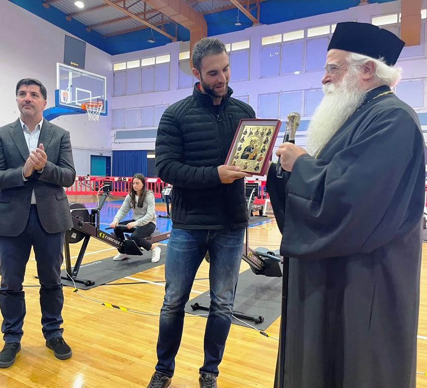 Κατά τη διάρκεια της τελετής, ο Περιφερειάρχης παρέδωσε τιμητική πλακέτα στον χρυσό Ολυμπιονίκη και Παγκόσμιο Πρωταθλητή Στέφανο Ντούσκο, αναγνωρίζοντας τη σπουδαία προσφορά του στον ελληνικό αθλητισμό και την κωπηλασία.