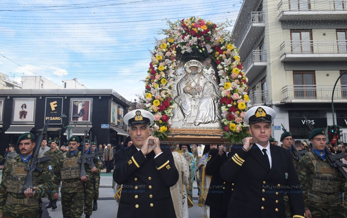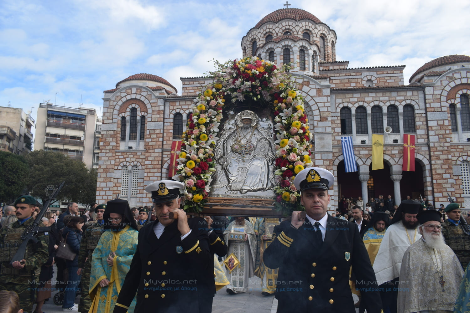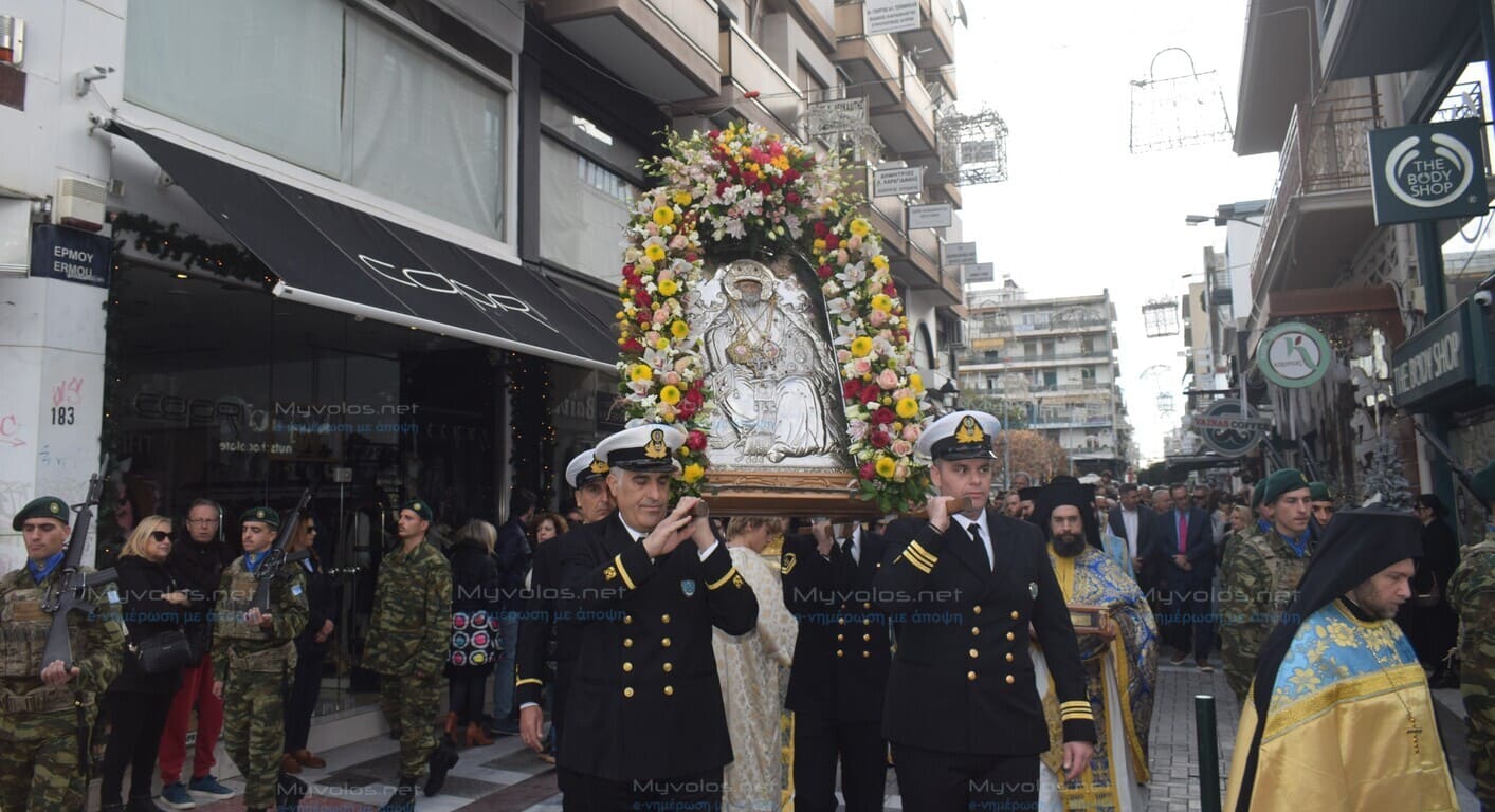 Το πρωί τελέστηκε πανηγυρική Θεία Λειτουργία και ακολούθησε η λιτάνευση των ιερών Εικόνων και Λειψάνων του Αγίου Νικολάου στους δρόμους της πόλης μέχρι την παραλία, υπό τους ήχους της Φιλαρμονικής του Δήμου Βόλου, συνοδεία Αγήματος Πεζοναυτών ενώ την εικόνα έφεραν στελέχη του Λιμενικού Σώματος. Στην παραλία τελέστηκε δέηση και ο ο Σεβ. Ποιμενάρχης μας κ. Ιγνάτιος απηύθυνε τον καθιερωμένο εόρτιο χαιρετισμό.