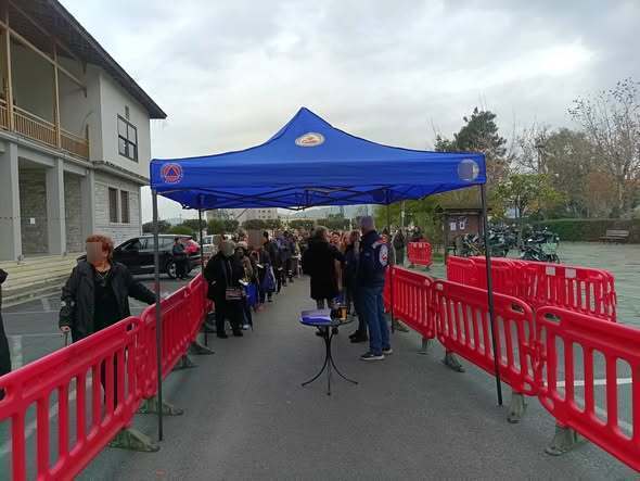 Ουρά πολιτών στη διανομή δωρεάν κρεάτων έξω από το Δημαρχείο Βόλου (εικόνες)