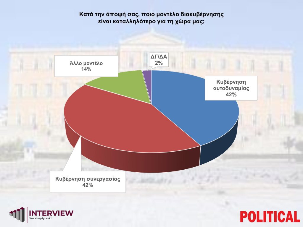 Στο ερώτημα ποιο μοντέλο διακυβέρνησης θεωρείται καταλληλότερο, οι πολίτες εμφανίζονται διχασμένοι: