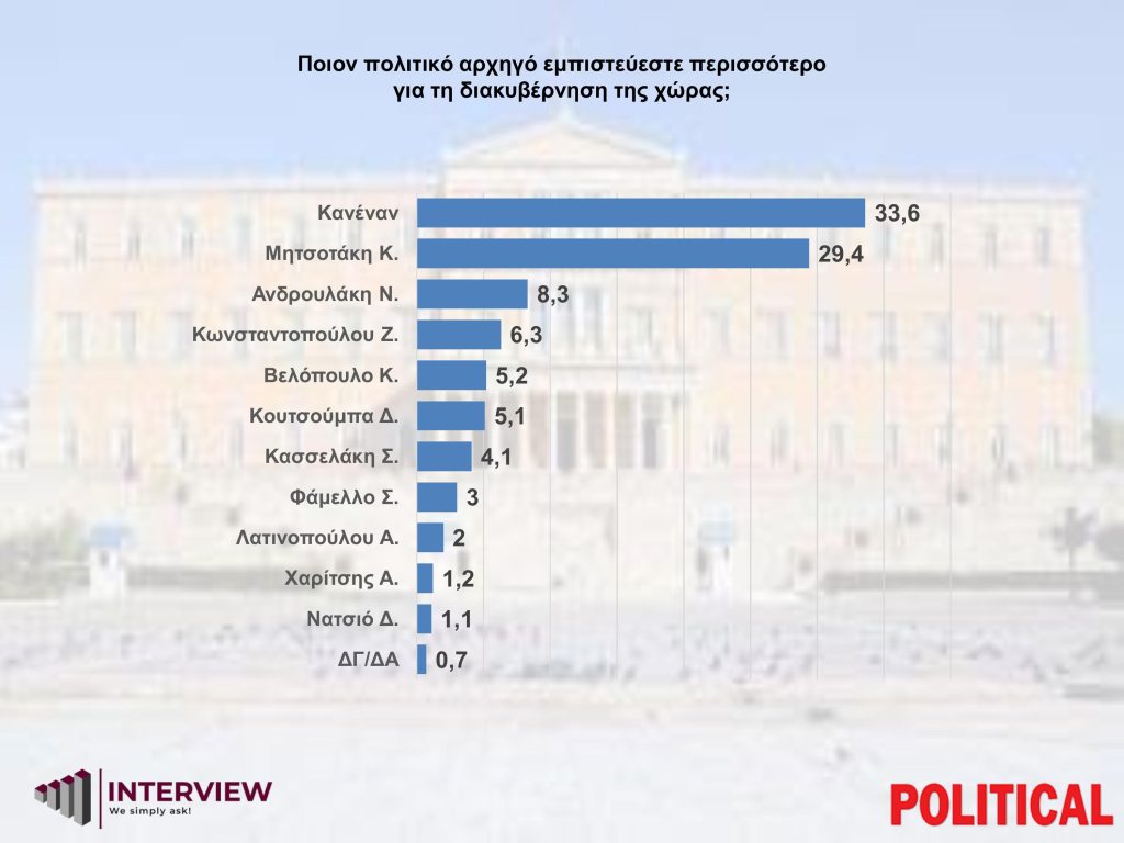 Στην ερώτηση «ποιον πολιτικό αρχηγό εμπιστεύεστε περισσότερο για τη διακυβέρνηση της χώρας;»