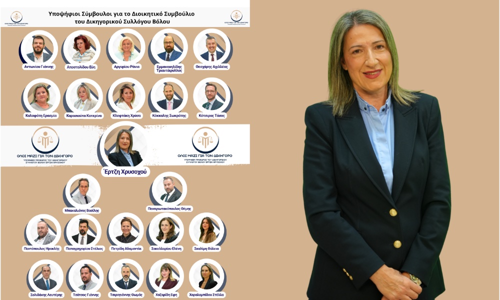 Υποψήφια Πρόεδρος η Έρτζη Χρυσοχού στον Δικηγορικό Σύλλογο Βόλου – Όλες οι υποψηφιότητες του συνδυασμού “Ολοι μαζί για τον Δικηγόρο”
