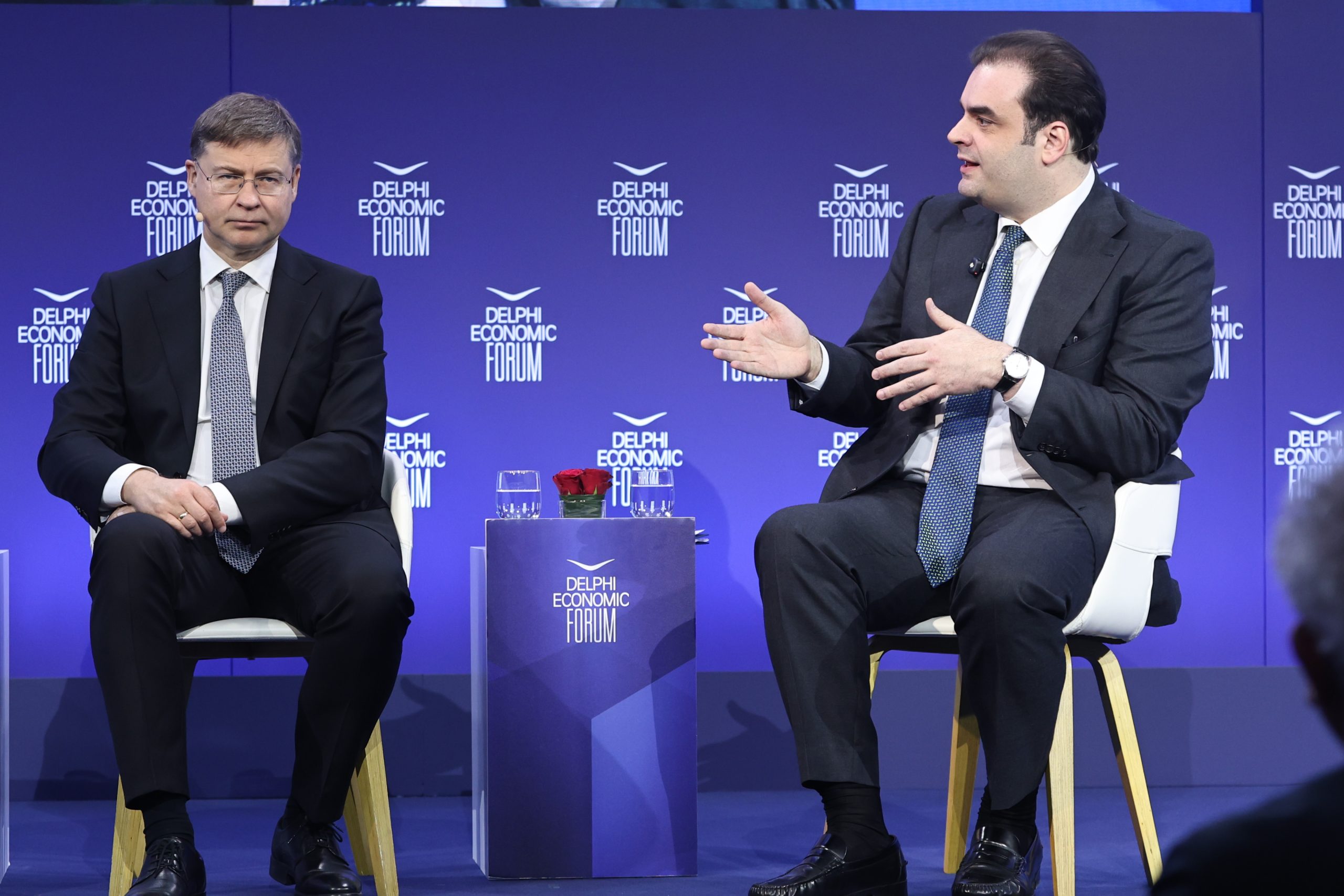 Πιερρακάκης από Φόρουμ Δελφών: Δεν επίκειται νέο πακέτο μέτρων – Ντομπρόβσκις: «Όχι» στη ρήτρα διαφυγής