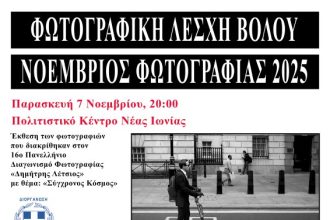 Η Φωτογραφική Λέσχη Βόλου, από την ίδρυσή της ως Πολιτιστικό Σωματείο το 2006, διοργανώνει τον 19ο «Νοέμβριο Φωτογραφίας» όπου περιλαμβάνονται…