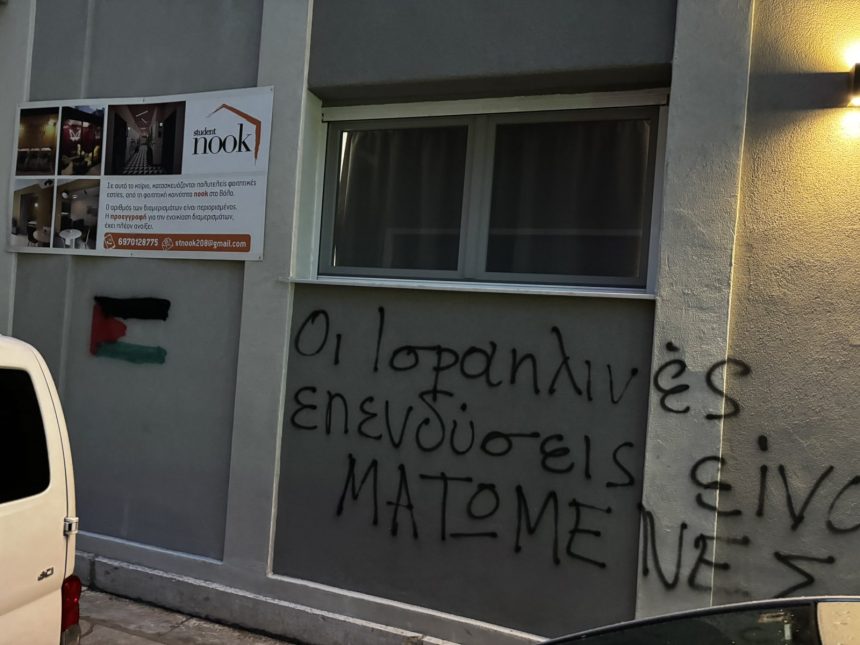 Στα πλαίσια της κινητοποίησης αναγράφτηκαν συνθήματα σε επενδύσεις Ισραηλινών συμφερόντων στην πόλη του Βόλου όπως σε συγκρότημα φοιτητικών κατοικιών έναντι του Οικονομικού Πανεπιστημίου.