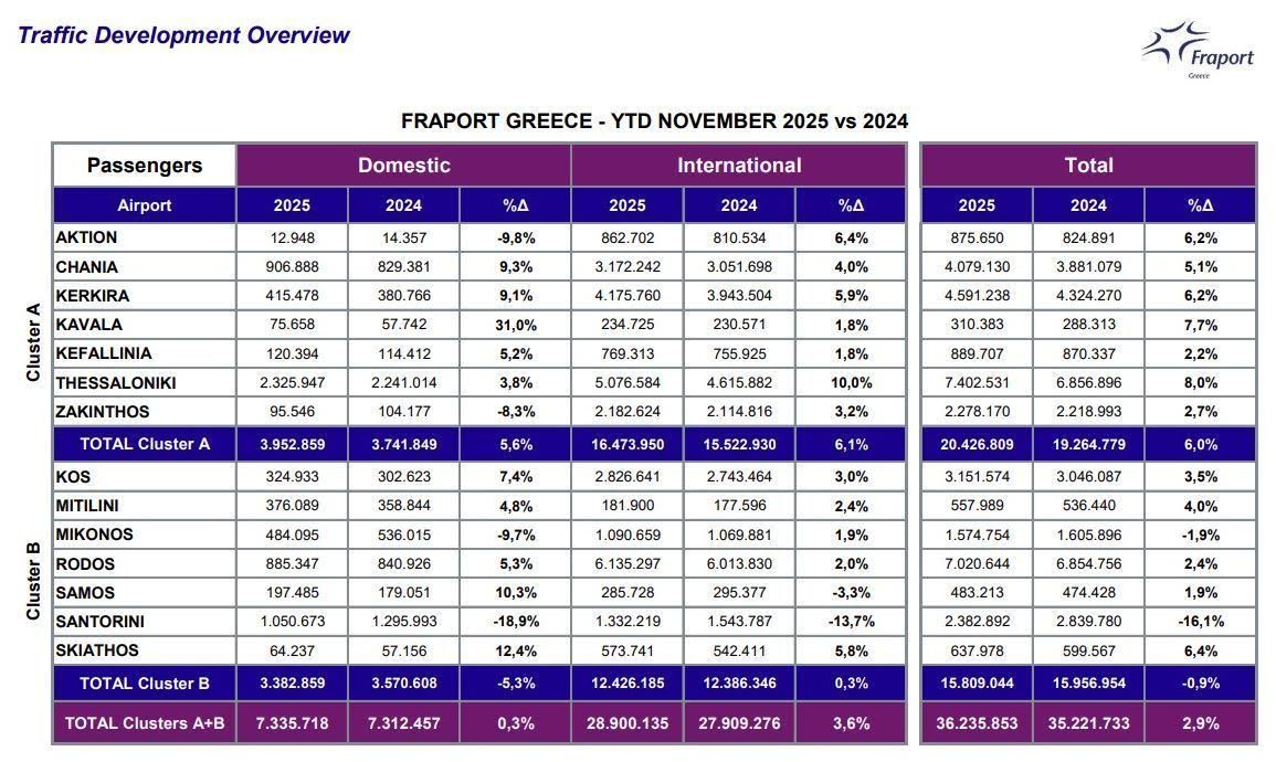 Τα τελευταία χρόνια και ιδιαίτερα από το 2023 και μετά οι επιδόσεις του αεροδρομίου της Σκιάθου σε επίπεδο επιβατικής κίνησης συνοδεύονται σχεδόν αυτονόητα από τη λέξη «ρεκόρ». Ρεκόρ που δεν κρατούν πολύ, καθώς το ένα διαδέχεται το άλλο, ανεβάζοντας κάθε φορά τον πήχη ακόμη υψηλότερα. Το 2025 αποτέλεσε μια χρονιά ορόσημο, με την επιβατική κίνηση να κλείνει σε ιστορικά υψηλά επίπεδα φθάνοντας στους 318.989 ταξιδιώτες, καταγράφοντας αύξηση 6,4% σε σχέση με το 2024, κατατάσσοντας το αεροδρόμιο της Σκιάθου τρίτο ανάμεσα στα 14 αεροδρόμια που διαχειρίζεται η Fraport, μετά από αυτό της Θεσσαλονίκης (8,0%) και της Καβάλας (7,7%).