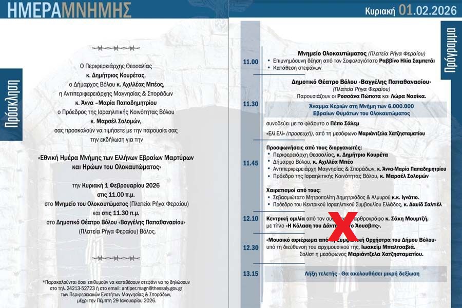 Στην απόφαση του Περιφερειάρχη Θεσσαλίας Δημ. Κουρέτα να μην του επιτρέψει να μιλήσει σε εκδήλωση στον Βόλο για το Ολοκαύτωμα,…