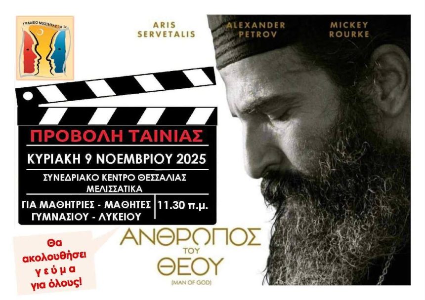 Με αφορμή την εορτή του Αγίου Νεκταρίου Πενταπόλεως, η Ιερά Μητρόπολη Δημητριάδος διοργανώνει την Κυριακή 9 Νοεμβρίου 2025 δύο προβολές της ταινίας «Άνθρωπος του Θεού (Man of God)», αφιερωμένης στη ζωή και την αγιότητα του Αγίου Νεκταρίου.