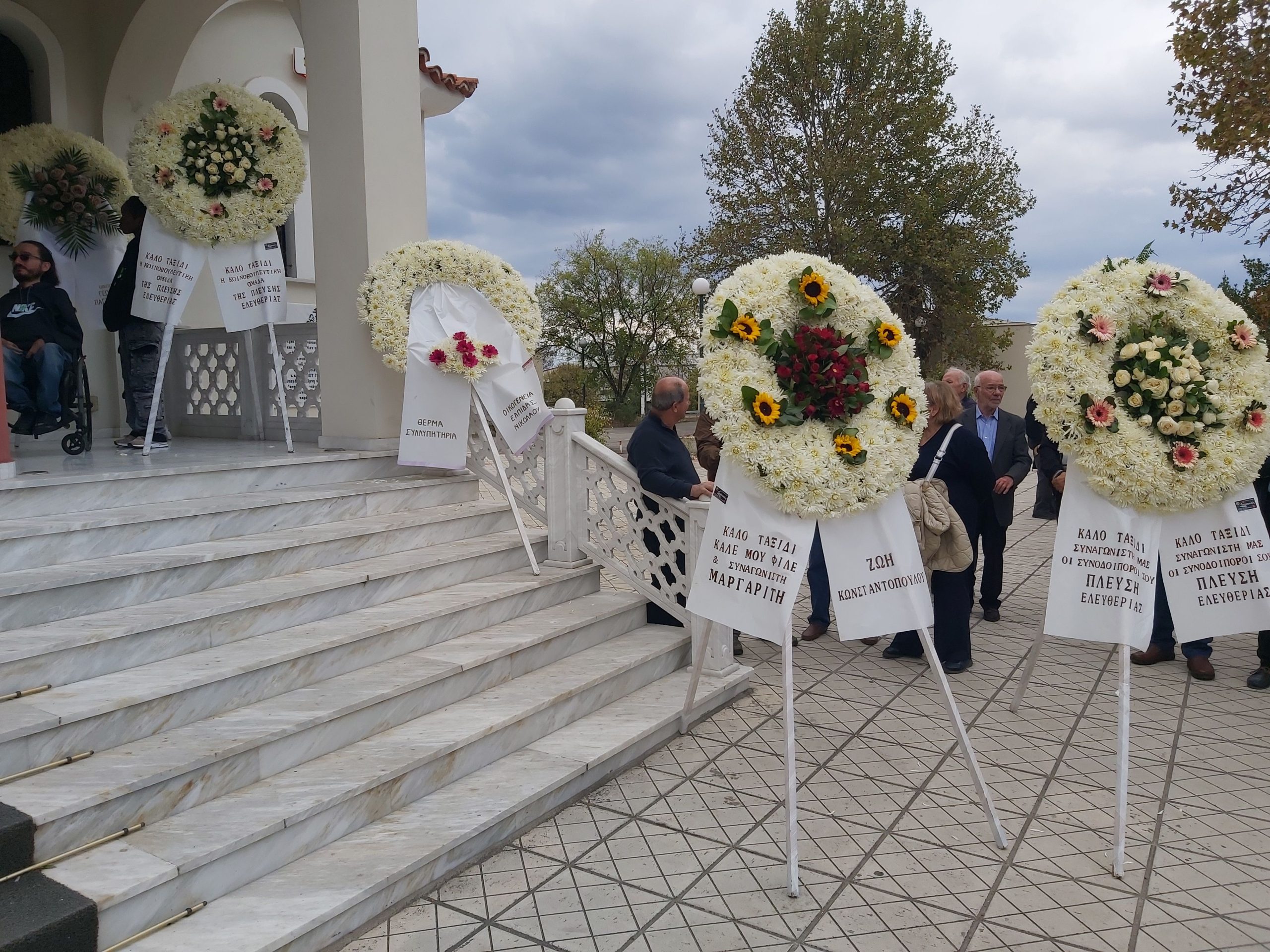 Στη νεκρώσιμη ακολουθία παραβρέθηκαν οι πρώην βουλευτές Μάκης Μπαλλής και Κων. Στεργίου, οι πρώην δήμαρχοι Βόλου Δημήτρης Πιτσιώρης και Πάνος Σκοτινιώτης και Ζαγοράς Κων. Χασάπης, η αντιπεριφερειάρχης Μαγνησίας Άννα Μαρία Παπαδημητρίου και ο θεματικός αντιπεριφερειάρχης Γιάννης Αναστασίου, η αντιδήμαρχος Βόλου Ελενα Αντωνοπούλου, ο επικεφαλής της μείζονος μειοψηφίας Δήμου Βόλου Νίκος Παπαπέτρος, πολλοί πρώην και νυν δημοτικοί σύμβουλοι, δικηγόροι, πολιτικές προσωπικότητες από διάφορους χώρους, συλλογικότητες κ.α.