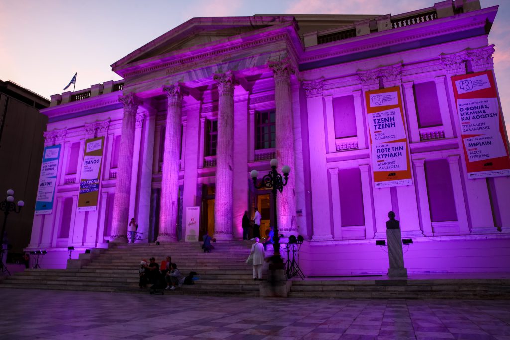 Με ροζ χρώμα φωταγωγήθηκε και το δημοτικό θέατρο Πειραιά στο πλαίσιο της ίδιας πρωτοβουλίας.