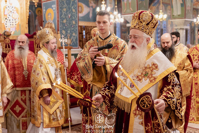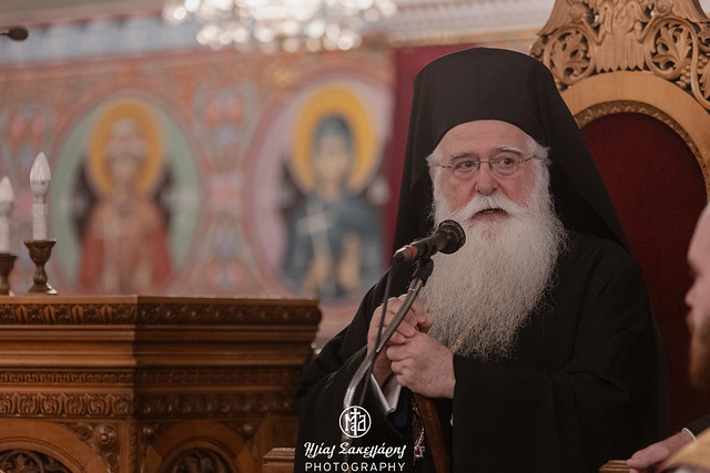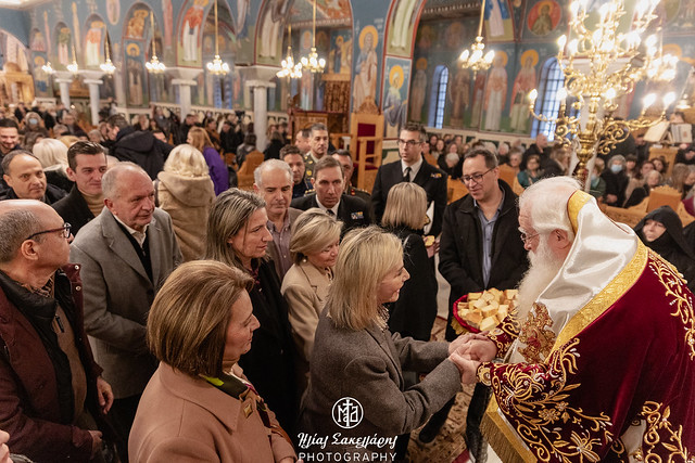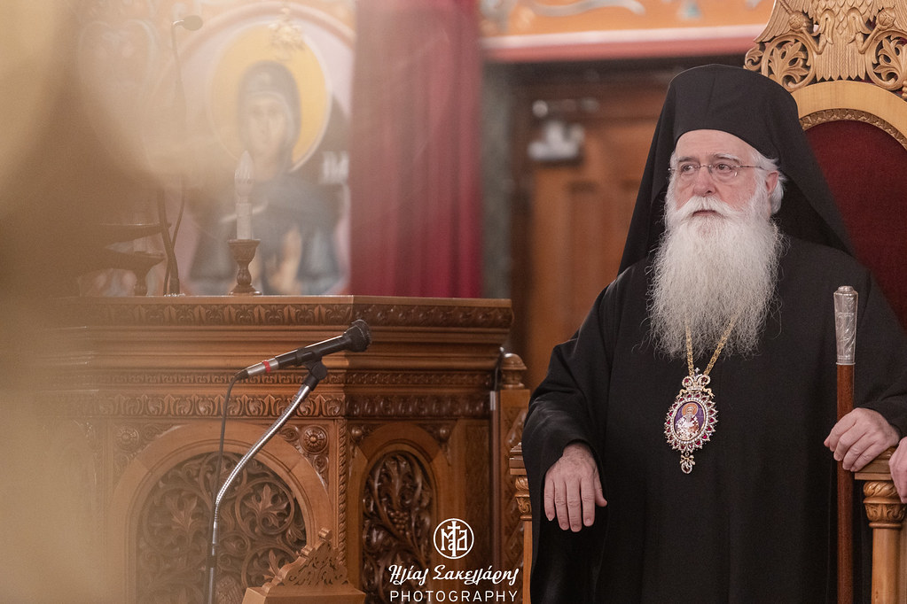 Ο εξ Αλβανίας Ιεράρχης αναφέρθηκε με δέος στο πρόσωπο του Μακαριστού Αρχιεπισκόπου Αλβανίας κυρού Αναστασίου, τονίζοντας ότι «δεν υπήρξε απλώς ένας Ιεράρχης, αλλά ένας οικουμενικός δάσκαλος. Όταν το 1991 έφτασε στην Αλβανία, βρήκε συντρίμμια. Εκεί που άλλοι έβλεπαν αδιέξοδο, εκείνος είδε την ευκαιρία για μια εκ βάθρων αναγέννηση. Με ακατάβλητη επιμονή, αναστήλωσε όχι μόνο ναούς, αλλά κυρίως τις ψυχές των ανθρώπων, χρίζοντας γέφυρες διαλόγου. Σήμερα, η κληρονομιά που μας αφήνει είναι μια ζωντανή απόδειξη ότι η πίστη, όταν συνδυάζεται με τον σεβασμό στον κάθε άνθρωπο – ανεξαρτήτως καταγωγής ή θρησκεύματος – μπορεί να αλλάξει τον κόσμο. Ο Αναστάσιος υπήρξε και θα παραμείνει ένας φωτεινός φάρος ενότητας και ειρήνης». Ολοκληρώνοντας την ομιλία του, αναφέρθηκε με λόγους ευγνωμοσύνης στον σεπτό Ποιμενάρχη μας κ. Ιγνάτιο, τον οποίο γνωρίζει και παρακολουθεί από χρόνων πολλών και τόνισε ότι «η ονομαστική εορτή του Επισκόπου δεν είναι προσωπική. Είναι εορτή της Εκκλησίας. Είναι πρόσκληση για προσευχή, ενότητα, συμπόρευση ποιμένος και λαού…».