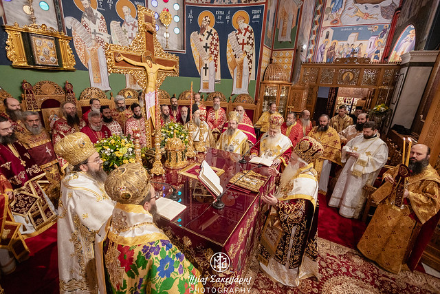 Κατά την διάρκεια της Ακολουθίας, ο Σεβ. Ποιμενάρχης μας κ. Ιγνάτιος προσφώνησε και καλωσόρισε ενθέρμως τους επισκέπτες Αρχιερείς, εξαίροντας τα χαρίσματα και την προσφορά του καθενός στην Εκκλησία, ενώ εξέθεσε και τους προσωπικούς δεσμούς που τον συνδέουν με τον καθένα από αυτούς. Τον Θείο Λόγο κήρυξε ο Σεβ. Μητροπολίτης Κορυτσάς κ. Αναστάσιος, ο οποίος επεσήμανε ότι «η ανακομιδή των λειψάνων δεν είναι απλώς συναισθηματική ανάμνηση του παρελθόντος, αλλά ομολογία πίστεως, που διατρανώνει ότι το σκήνωμα του Ιερομάρτυρος ηγιάσθη και συμμετέχει ήδη στην δόξα της Αναστάσεως του Χριστού… Η Αγία Γραφή μαρτυρεί ότι ο Θεός ενεργεί διά της ύλης… συνεπώς, η Εκκλησία, τονίζει ότι η Χάρις του Θεού δεν αναιρεί την ύλη, αλλά τη μεταμορφώνει, την ανυψώνει, την αγιάζει…». Αναφερόμενος στον εορταζόμενο Άγιο Ιγνάτιο τον Θεοφόρο, παρατήρησε ότι «μας παρέδωσε, διά των Θεοπνεύστων επιστολών του, το φρόνημα της ενότητος, της ευχαριστιακής ζωής και της αφοσίωσης στον Επίσκοπο, ως εικόνα Χριστού μέσα στην Εκκλησία…».