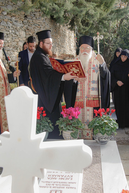 Στο τέλος της Θείας Λειτουργίας, ο Σεβ. Ποιμενάρχης μας τέλεσε το τεσσαρακονθήμερο Μνημόσυνο της μακαριστής Ελένης Κυρανάκη, μητέρας του Αναπληρωτού Υπουργού Μεταφορών, εξαίροντας την αυθεντικότητα της πνευματικής της ζωής, την συνειδητή αγάπη της για τον Χριστό και την Εκκλησία και την μεγάλη αγάπη της προς το Μοναστήρι.