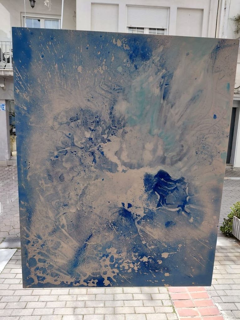 Το μπλε, όπως εξηγεί, δεν είναι απλώς ένα χρώμα, αλλά μια ολόκληρη φιλοσοφία: «Είναι η εικόνα του ουρανού και της θάλασσας. Καταγράφει την απλωσιά και κάνει τον άνθρωπο να νιώθει καλύτερα». Μέσα από αυτό, επιχειρεί να μεταφέρει ένα ευρύτερο μήνυμα ζωής, καθώς, όπως τονίζει, «η τέχνη είναι πρόταση ζωής».