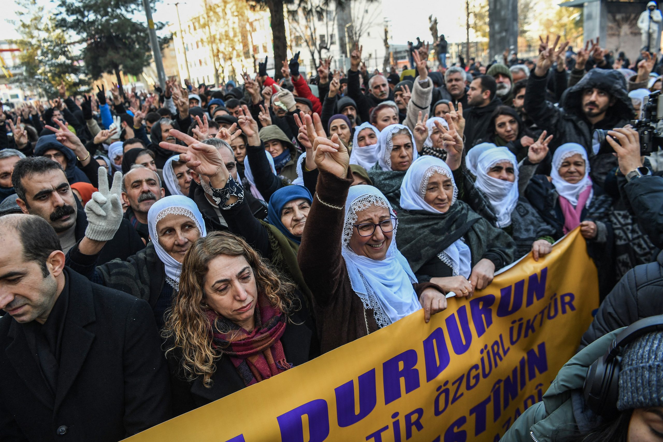 Σύμφωνα με το DEM, τρίτη δύναμη στο κοινοβούλιο της Τουρκίας, που οργάνωνε τη συγκέντρωση αυτή στη συνοικία Σαντζάκτεπε, μέλη του κόμματος συνελήφθησαν επίσης.