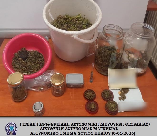 Συνελήφθη, χθες (05-01-2026) το μεσημέρι σε περιοχή του Δήμου Νοτίου Πηλίου, από αστυνομικούς του Αστυνομικού Τμήματος Νοτίου Πηλίου, ημεδαπός σε βάρος του οποίου σχηματίστηκε δικογραφία για παραβάσεις της νομοθεσίας περί ναρκωτικών.