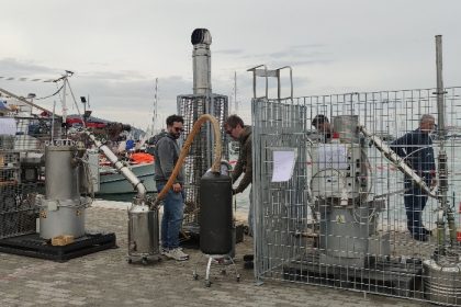 Φορητή μονάδα πυρόλυσης στην μαρίνα Τελωνείου Βόλου – Μετατρέπει σε πετρέλαιο τα πλαστικά που μαζεύουν οι ψαράδες στον Παγασητικό (εικόνες)