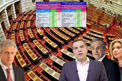 Σενάρια κατανομής βουλευτικών εδρών σύμφωνα με στοιχεία τελευταίας δημοσκόπησης, επεξεργάστηκε και δημοσίευσε…