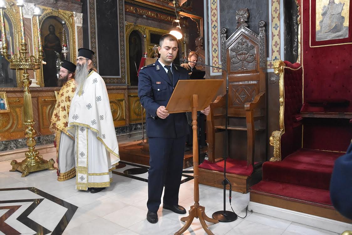 Μετά το πέρας της δοξολογίας, αναγνώστηκε η Ημερήσια Διαταγή του Αρχηγού της Ελληνικής Αστυνομίας, Αντιστράτηγου Δημήτριου Μάλλιου, από τον Αστυνόμο Α΄ Πέτρο Παπαδημητρίου της Γενικής Περιφερειακής Αστυνομικής Διεύθυνσης Θεσσαλίας.