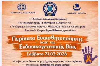 Δράση ενημέρωσης για την ενδοοικογενειακή βία θα πραγματοποιηθεί σήμερα Σάββατο στις 12 το μεσημέρι στον Βόλο. Πρόκειται για πορεία ευαισθητοποίησης…