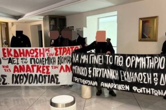 Παρέμβαση με πανώ και συνθήματα στους τοίχους της Πρυτανείας του Πανεπιστημίου Θεσσαλίας στον Βόλο πραγματοποίησε ομάδα αναρχικών. Οι διαμαρτυρόμενοι ζήτησαν…