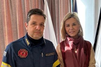 Η Ζ. Μακρή με τον Κ. Μπαλαντίνα, νέο Διοικητή Πυροσβεστικών Υπηρεσιών Μαγνησίας