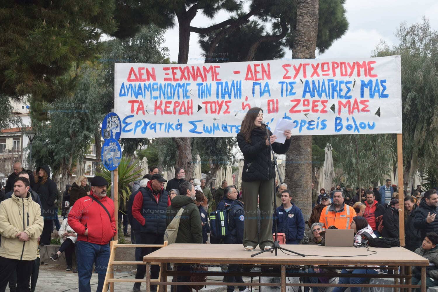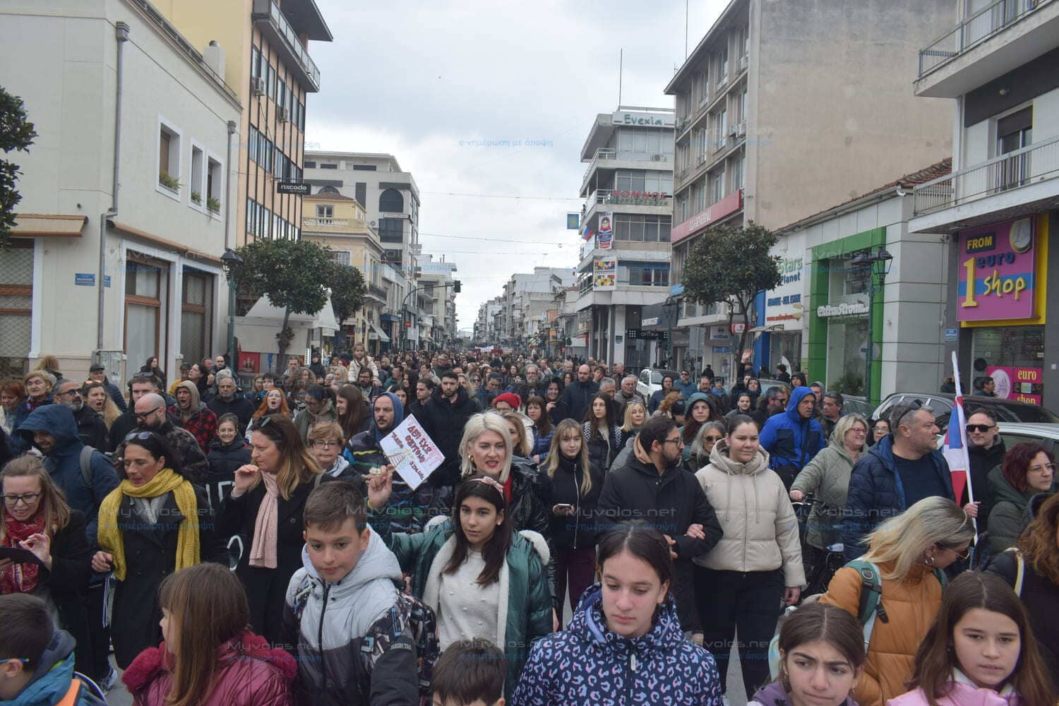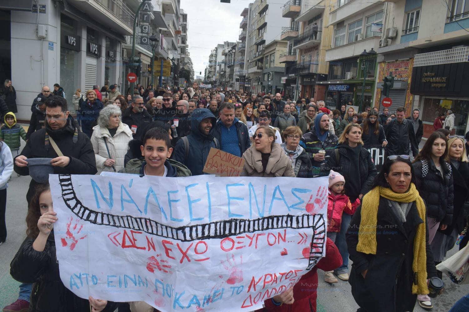 Από τα “κύματα” (Ιάσονος – Φιλελλήνων), όπου πραγματοποιήθηκαν οι ομιλίες ξεκίνησε η πορεία με τον κόσμο να γεμίζει την Δημητριάδος από εκεί μέχρι τον κόμβο Δημαρχείου με τους συγκεντρωθέντες στη συνέχεια να κατευθύνονται στον κλειστό σιδηροδρομικό σταθμό Βόλου.