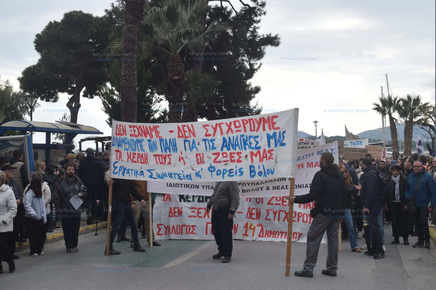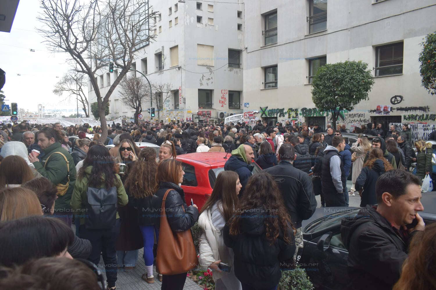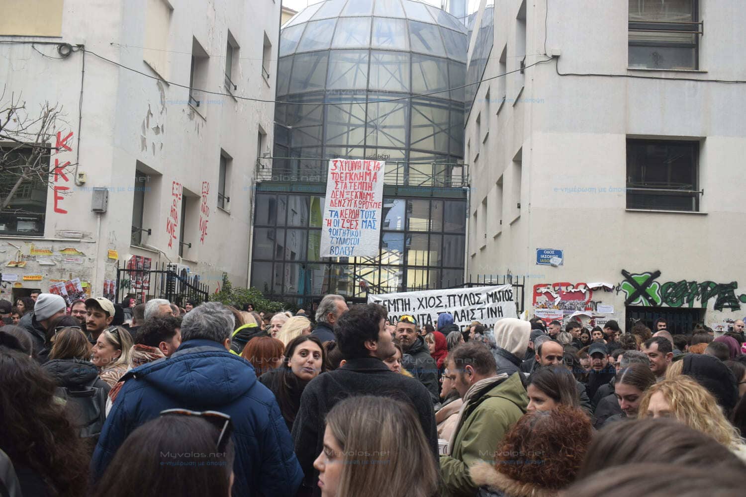 Σχολεία, φοιτητές, σωματεία, συλλογικότητες ακόμη και μπλοκ οπαδών της ΑΕΚ, συμμετείχαν στην μεγαλειώδη συγκέντρωση στην Ιάσονος και στην παραλία περιμετρικά του Πανεπιστημίου και στη συνέχεια πραγματοποιήθηκε η μεγάλη πορεία μέχρι τον ΟΣΕ με χιλιάδες άτομα όλων των ηλικιών.
