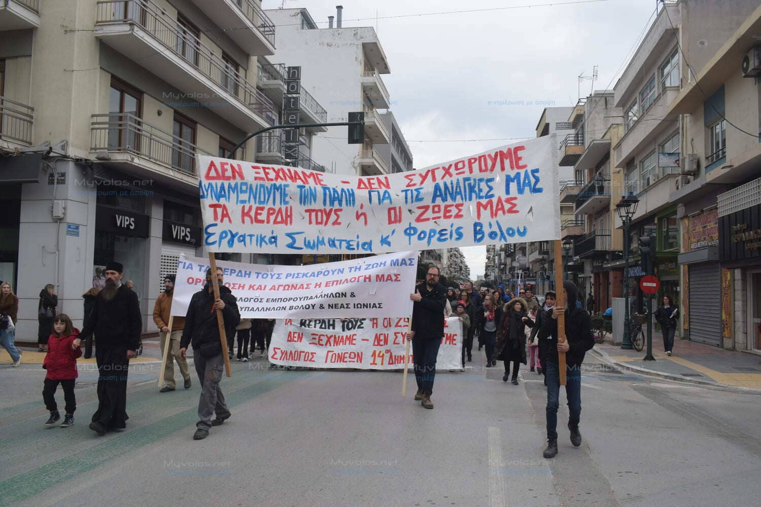 Με έκτακτες κυκλοφοριακές ρυθμίσεις η Αστυνομία ρύθμισε την κίνηση οχημάτων στον κεντρικό τομέα του Βόλου μέχρι την λήξη της κινητοποίησης.