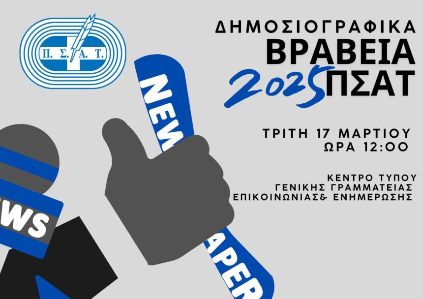 Όλα έτοιμα για την εκδήλωση απονομής των Δημοσιογραφικών Βραβείων ΠΣΑΤ του 2025, η οποία θα πραγματοποιηθεί την Τρίτη 17 Μαρτίου 2026 και ώρα 12μ. στο Κέντρο Τύπου της Γενικής Γραμματείας Επικοινωνίας και Ενημέρωσης. Πρόκειται για έναν θεσμό που έχει καταξιωθεί στο χρόνο, μοναδικός μεταξύ των δημοσιογραφικών Ενώσεων και φορέων.